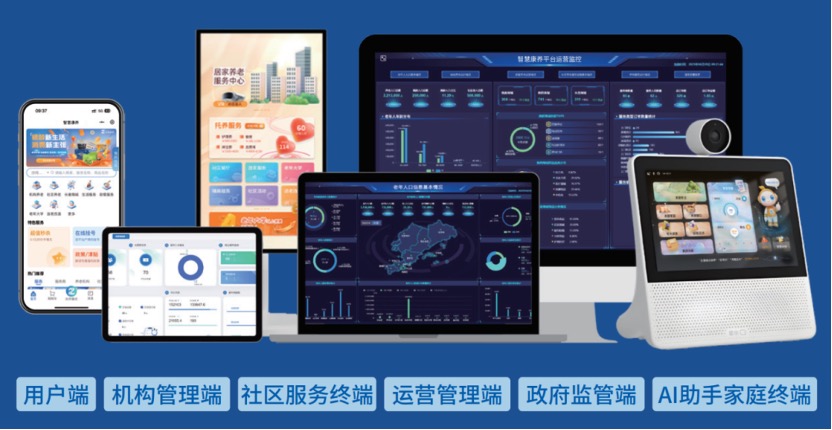 该平台不仅涵盖用户端、机构端与政府端三大核心模块,还拓展至 AI 家庭终端与社区服务终端,为“一刻钟养老服务圈”的实施提供有力支撑。当前,平台借助构建“运营-业务-数据”三大系统的协同机制,达成服务调度、资源匹配、智能预警与政府监管的全域联通,切实实现“资源一图可视、服务一键可达、监管一屏通览”的运营效果,促使基本养老服务兼具公平可及性与精准高效性。