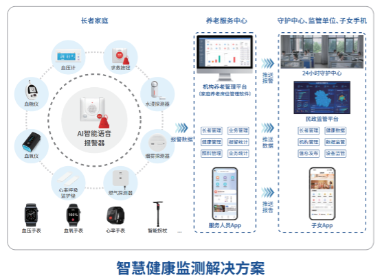 在科技赋能养老生态基础上,东软睿新紧密遵循“推进数字中国建设”以及“人工智能融合民生保障”的国家战略导向,将技术创新确立为养老服务提质升级的核心驱动力。凭借强大的研发能力与完备的生态整合能力,团队聚焦康养产业数字化转型需求,构建了覆盖多场景、全生命周期的全方位智慧康养解决方案体系,其中包括长者监护、家庭养老床位监护、智慧健康监测以及适老化改造等具有针对性的系统解决方案。