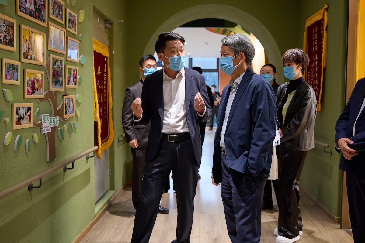 随后,嘉宾们参观了东软健康科技产业园区内的医养机构,详细了解了园区的整体规划、服务项目及运营理念,并先后考察了大连睿康心血管病医院、睿康卓美口腔医院和睿康之家颐养院。大连睿康心血管病医院公益事务部主任孙琳向嘉宾介绍了医院的发展历程和优质医疗资源。睿康之家颐养院院长朱厚彬则带领嘉宾参观了颐养院的体适能康复区、艺术连廊、活动区、样板间及助浴间等,嘉宾们对东软的智慧化康养模式给予了高度评价。